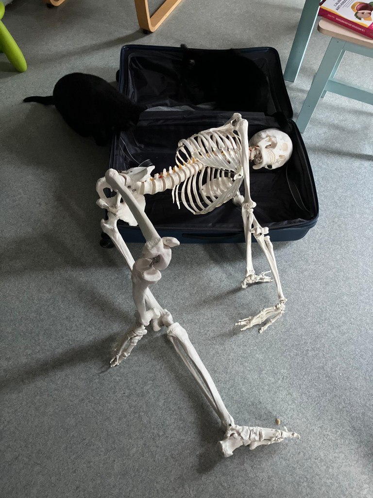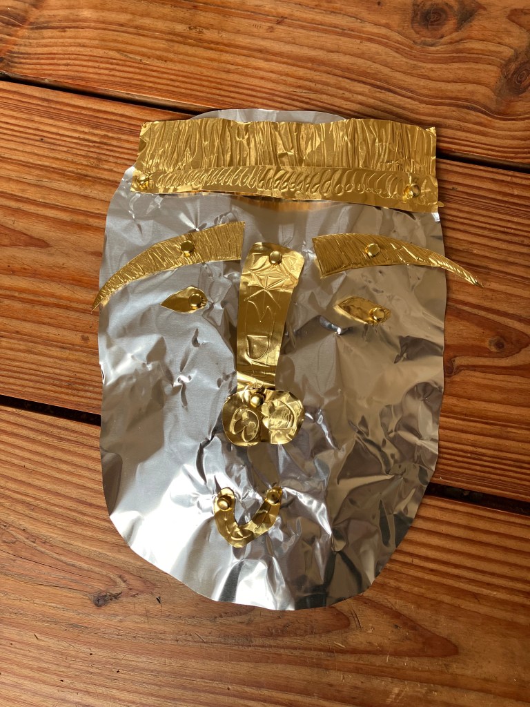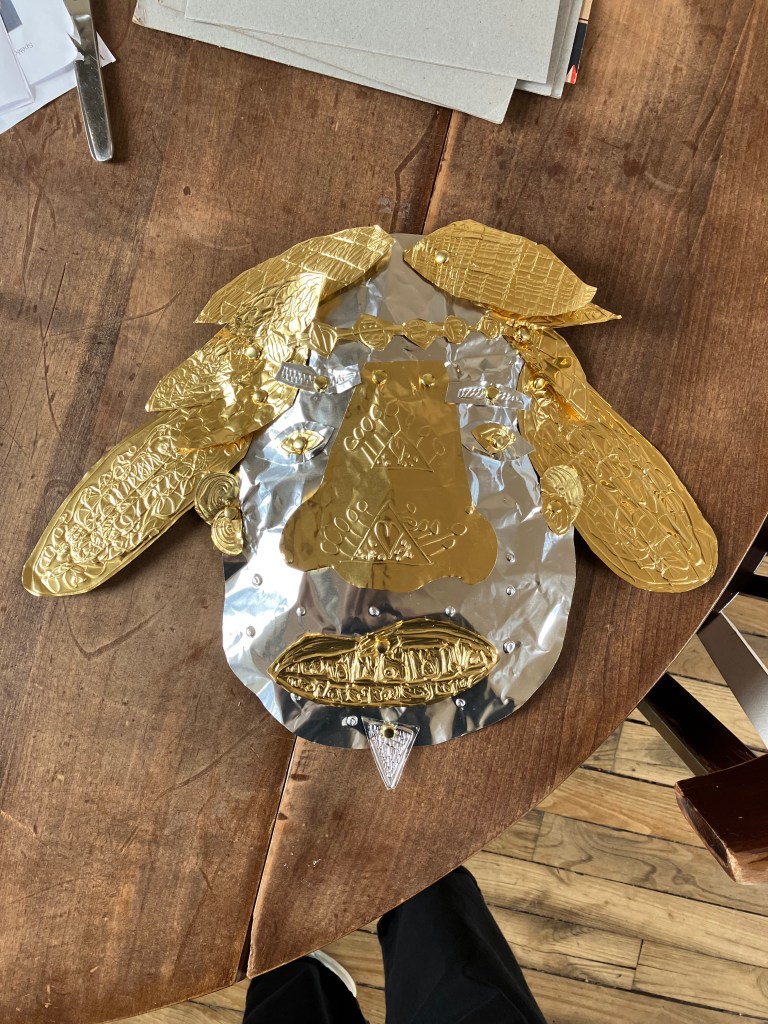 Les enfants du centre aéré et moi avons confectionné des masques funéraires pour mon assistant Marty le squelette. Atelier à développer et à suivre…
