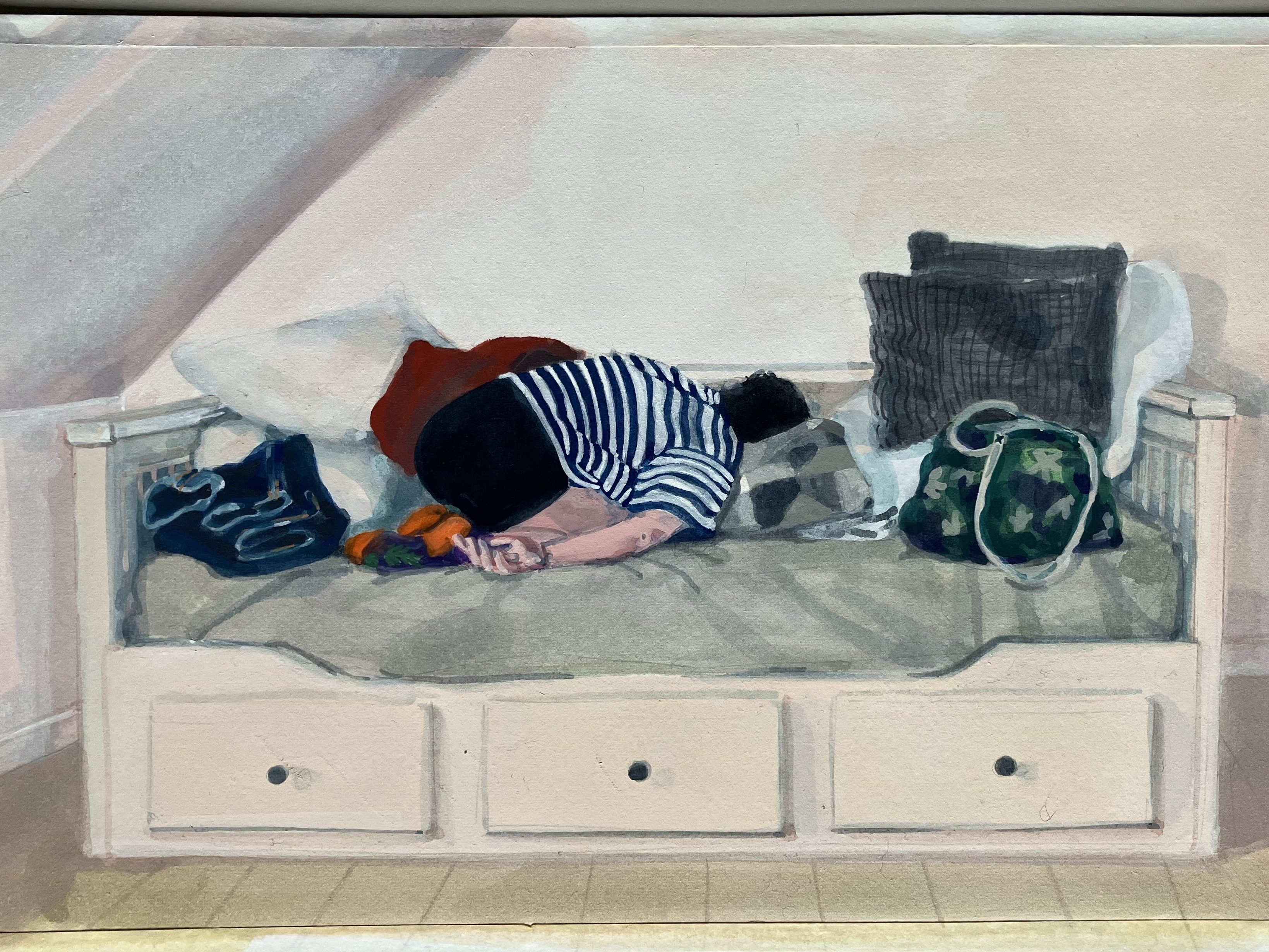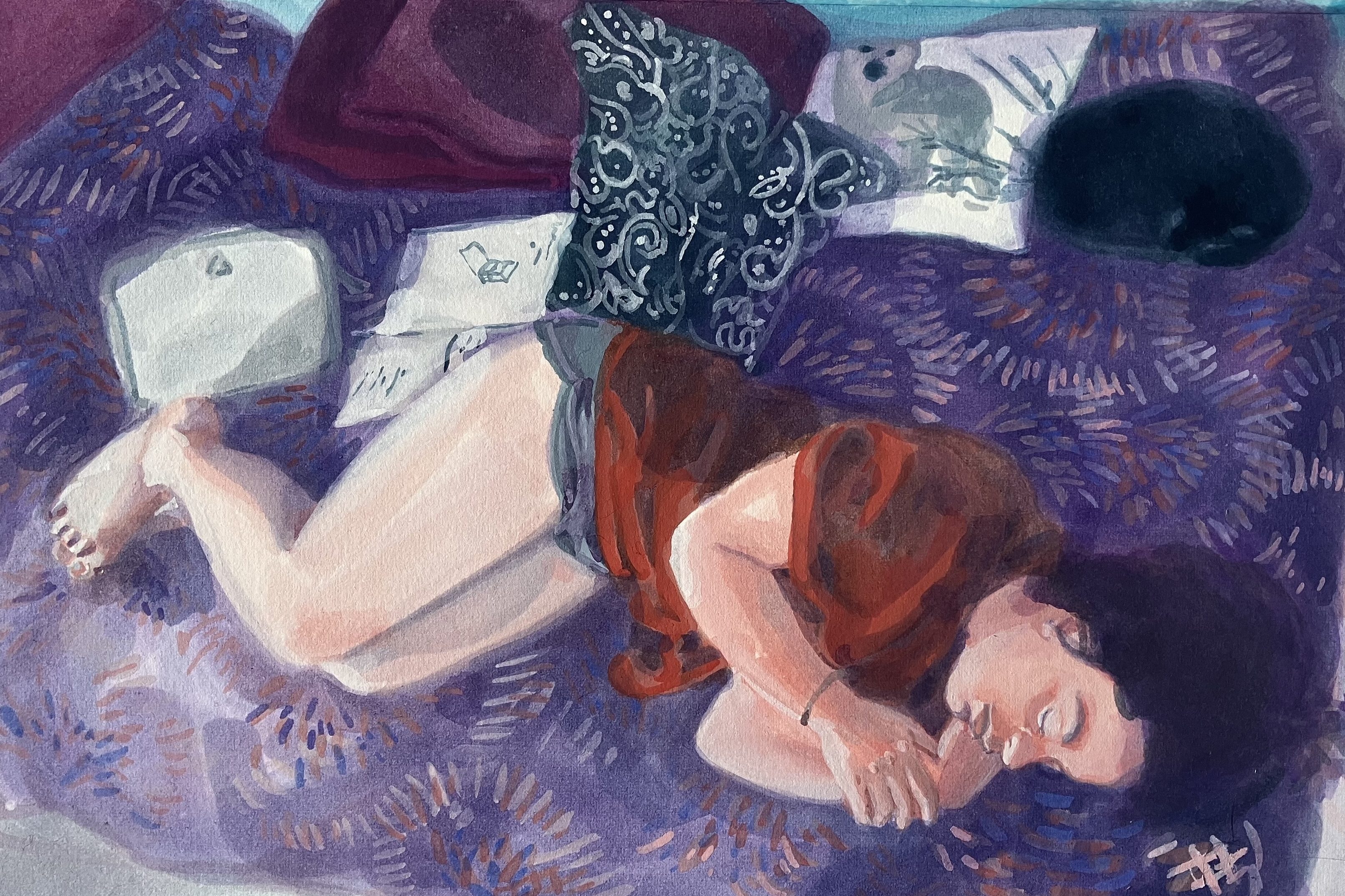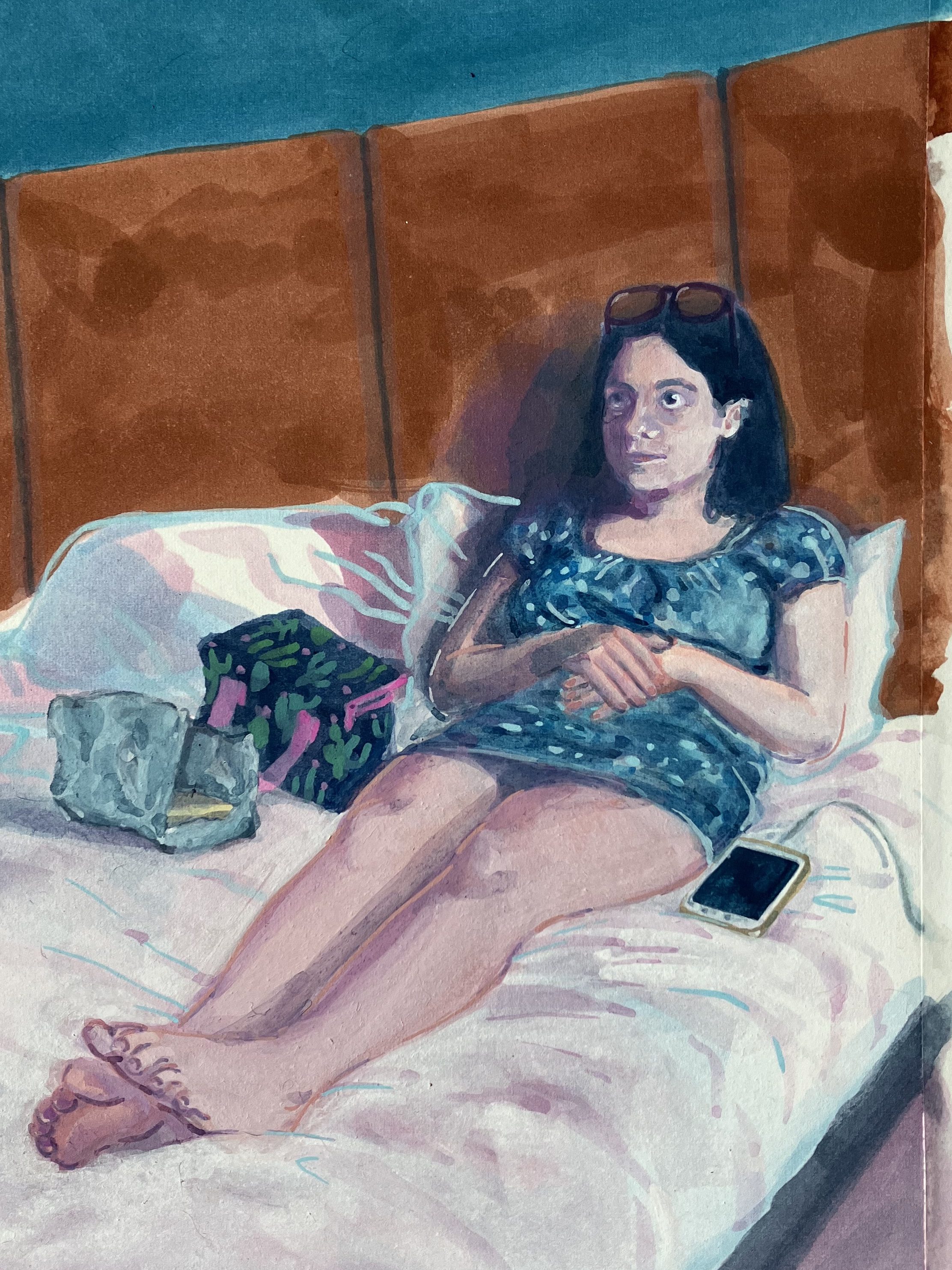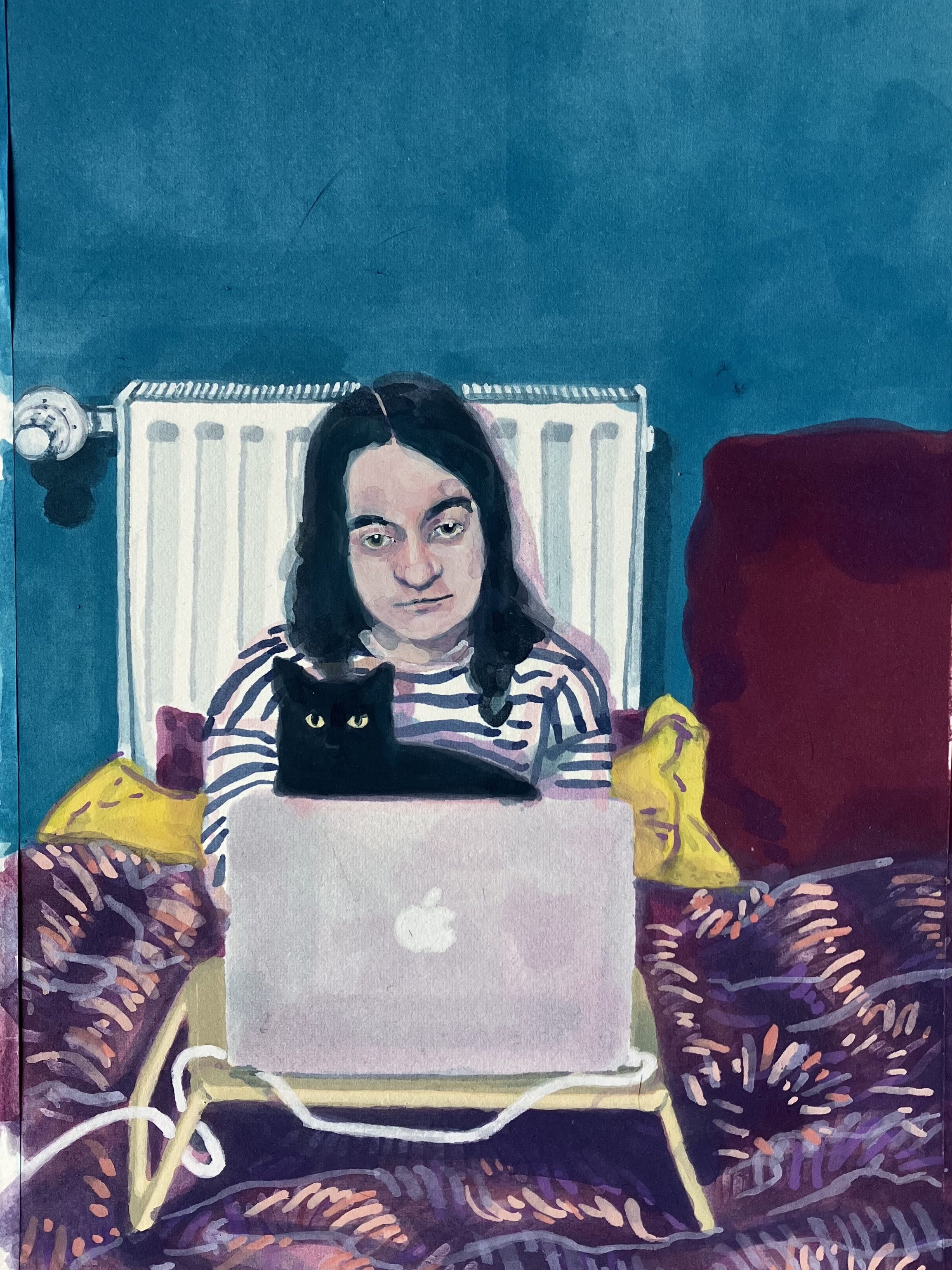 Mère d’une adolescente, j’ai re-découvert l’ennui profond voire abyssal mais côté spectateur. Entre fascination et agacement, j’ai d’abord commencé à la prendre en photo, pour ensuite peindre des portraits.