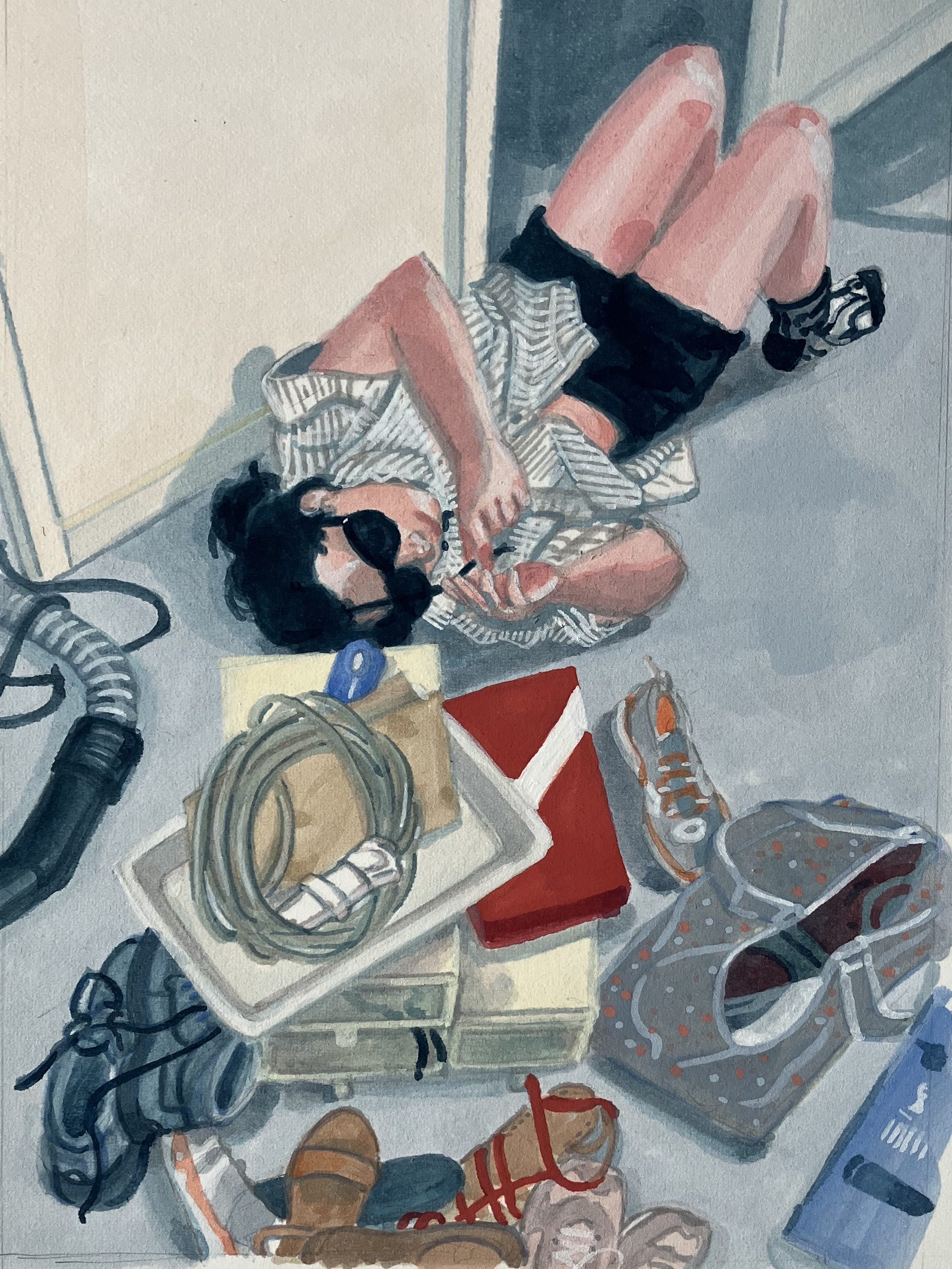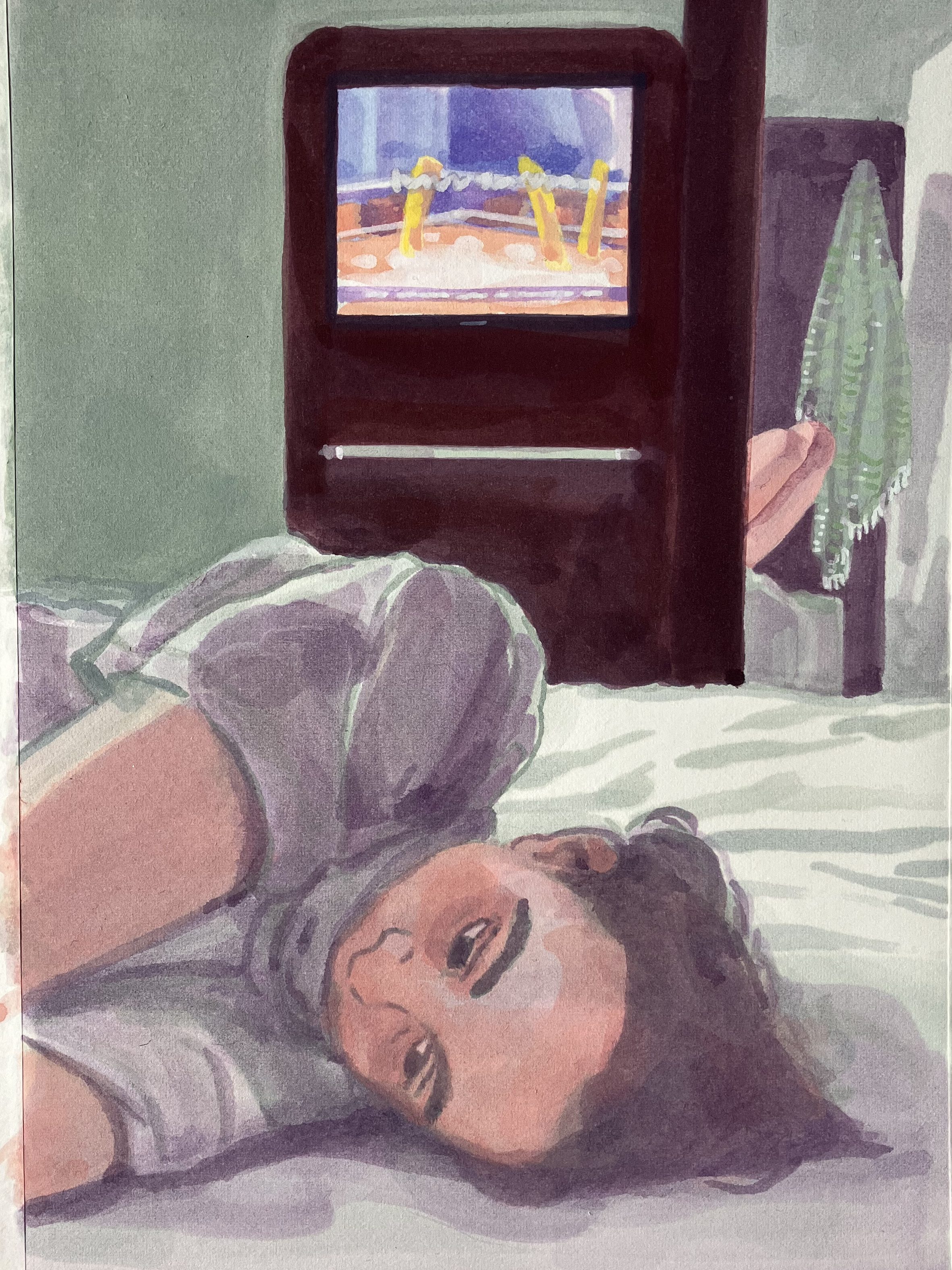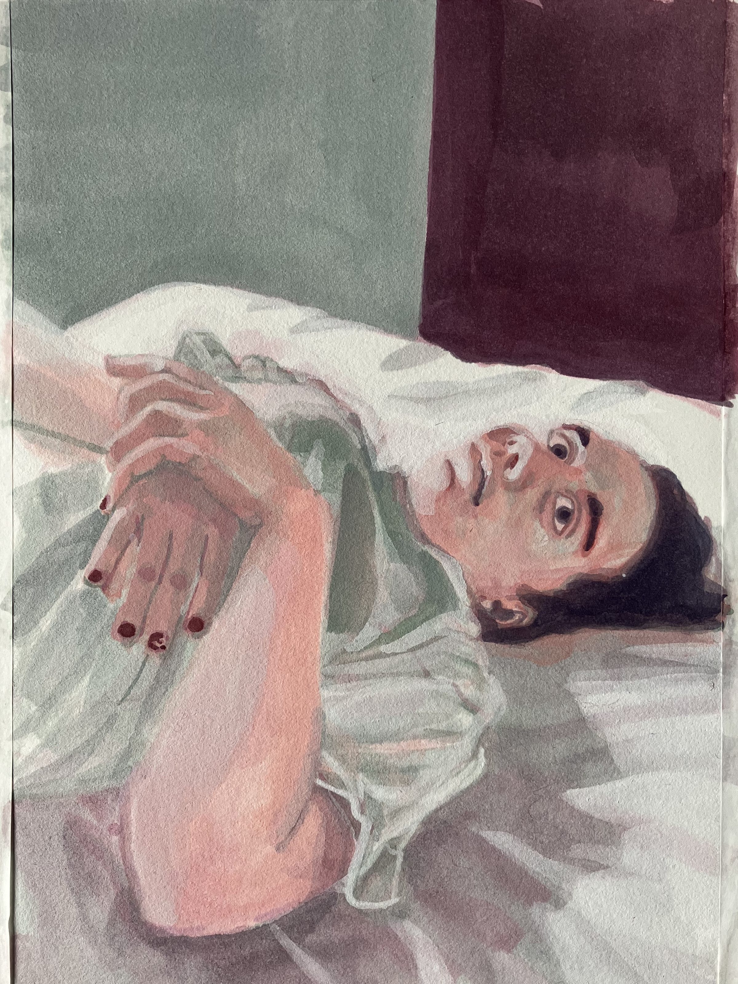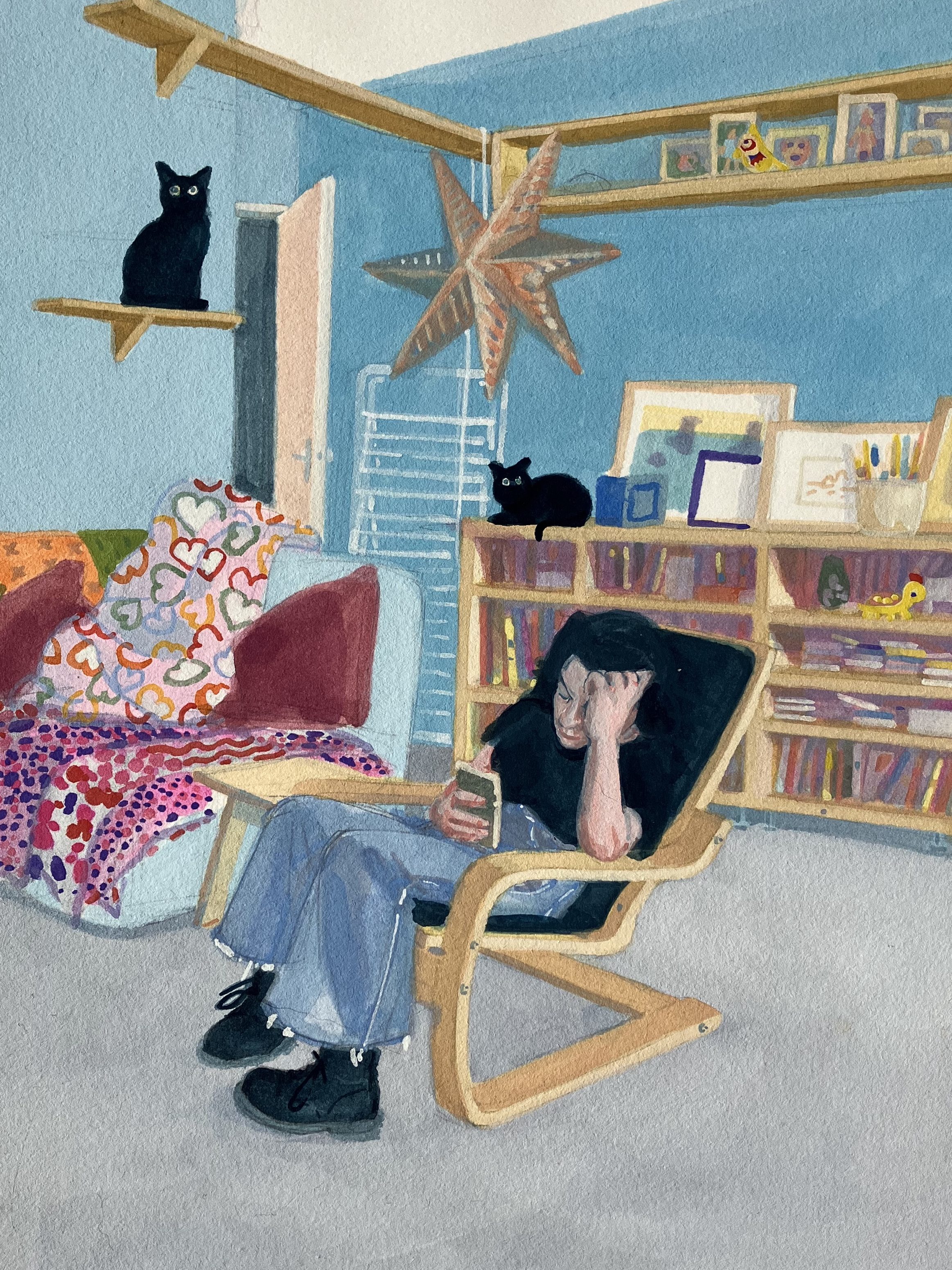 Mère d’une adolescente, j’ai re-découvert l’ennui profond voire abyssal mais côté spectateur. Entre fascination et agacement, j’ai d’abord commencé à la prendre en photo, pour ensuite peindre des portraits.