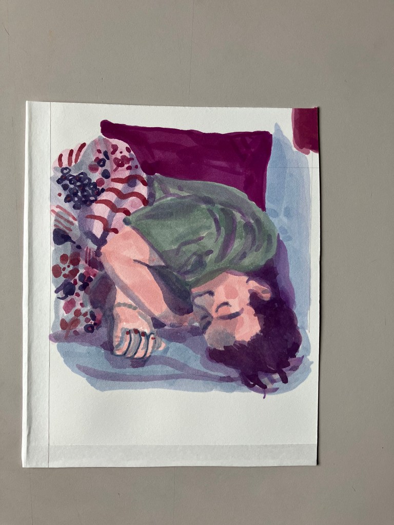 Après quelques essais sur un papier acheté par erreur (Arche 88), je me suis lancée dans une série. Série que j’ai posté sur les réseaux sociaux avec le #Boringteen.